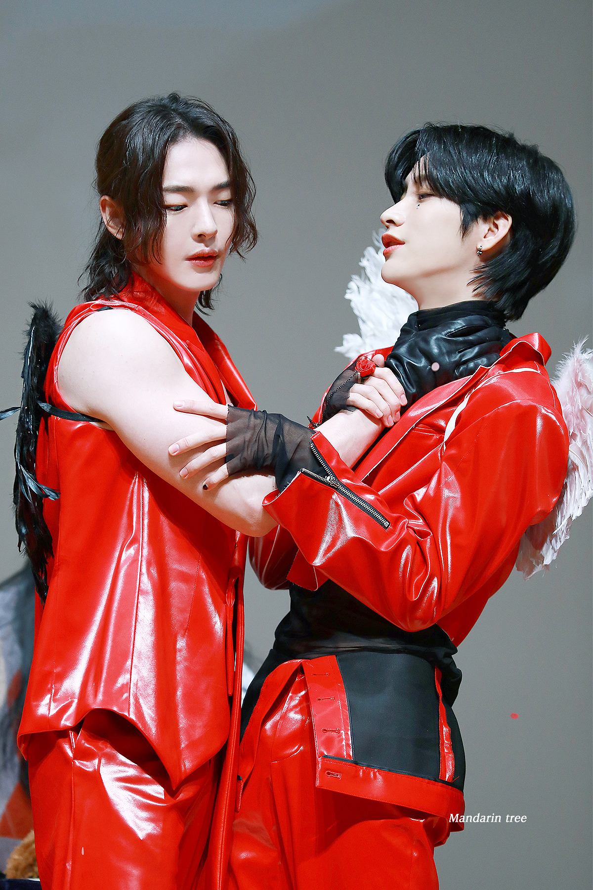 Meowwww meow meow meow. Meow. Meoww. So I picked up meowing as an echolalia thing and I don't know how I feel about it because now I'll just be having a conversation and meow meow meow? Mrrrow? Meow. No driving today because my pain started flaring back up. It was so excruciatingly painful to sit up for a while but I put on an icy hot patch and it actually helped for once? meow meow moew. meoww. I finally un-imprinted on my Jahan photocard so I'm not carrying it around all the time. Epic win for me. I still think about that guy a lot but whatever. There are two (2) guys in my head rn Not in the hallucinatory sense yippee!! Actually it's been very quiet on the voices in my head front so that is a win and my other hallucinations have gone down a bit!! Which means my psychosis is, in fact, linked to my pmdd. Kind of the worst! But anyways I have been thinking about Kyubin onlyoneof and Jahan kingdom a lot lately. Not in a parasocial way or anything just a rotating them in my head way. Putting Kyubin on a microscope slide and examining him. Appreciating Jahan's voice a normal amount. Okay one gay thought as a treat. I was doing fansite deep dives the other day and I saw this pic of Kyubin and Nine and. Okay. I will say that one rewired my brain chemistry a little bit 👍 From this website or @KB_mandarintree on twitter. Did you know if a link has this symbol & in it neocities tries to read it as like. I forget the term. whatever. It gives you a silly error about it but it doesn't actually break your code. Anyways there's also similar pictures here from Eden which I like because they have. Y'know. Skin tone. But I also like the red outfits so. Both sets are nice I just wish the first one's didn't look so white y'know. Anyways still not much going on in my life. I'm so tired right now.